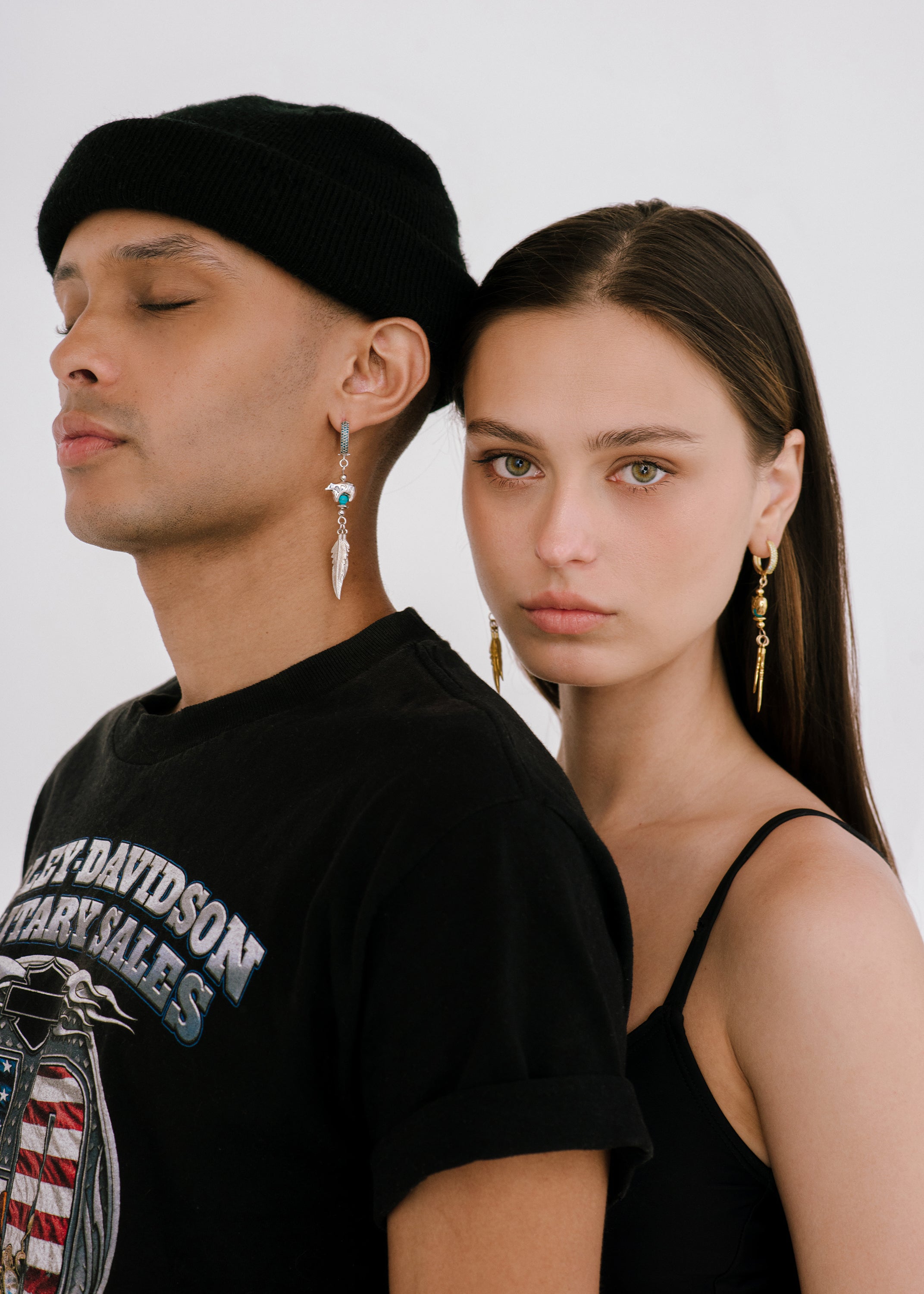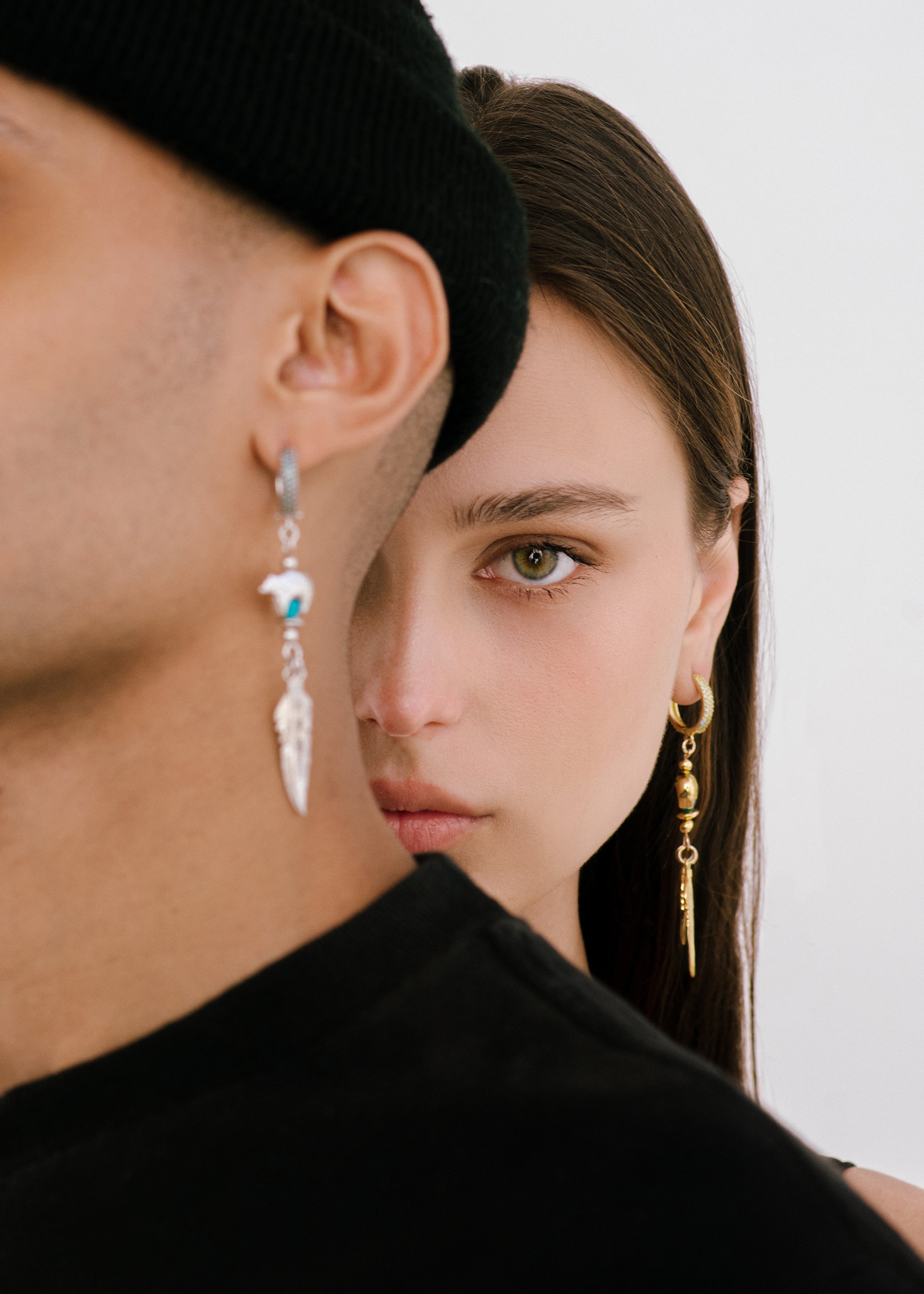 IIICONIC JEWELRY WITH SIGNATURE DETAILING COMPRISES IICONIC'S LATEST FINE JEWELRY COLLECTION. PURPOSEFUL IN ITS SCULPTURAL IMPERFECTIONS AND ACCENTED WITH FRESHWATER PEARLS AND NATURAL STONES, FUSES WITH STRENGTH IN GOLD AND SILVER TONES.